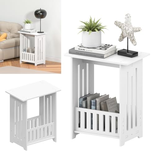 DECOMELODY Compact Small Furniture Sofa Side Table Bedside End Table for Bedroom Living Minimalist White Modern Mini Bedside Cabinet for Small Spaces Versatile Storage Surface for Books and