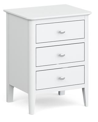 Cornish White Painted Bedside Cabinet Table | Roseland Furniture Small Contemporary Solid Wooden 3 Chest of Drawer Nightstand Unit for Bedroom or Bathroom | Fully Assembled