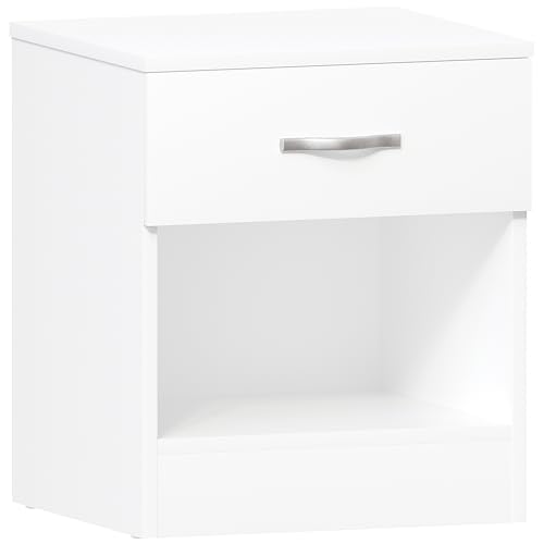 vidaXL White Bedside Cabinet/Nightstand - Drawer & Open Compartment, Engineered Wood - Bedroom Storage, Rectangular 40x34x50 cm - Modern Style