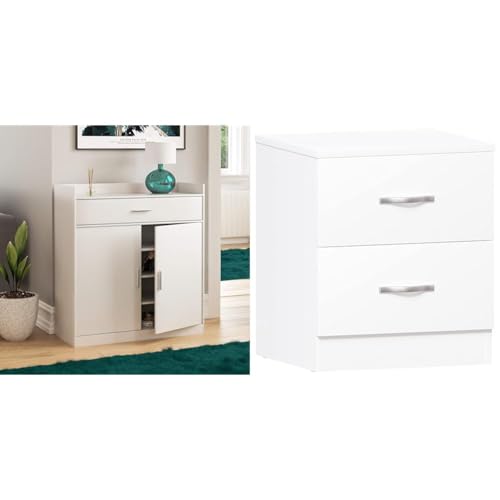 Vida Designs Dalby Modern Shoe Cabinet, 2 Door 1 Drawer, Hallway Cupboard Storage & White Bedside Cabinet, 2 Drawer With Metal Handles & Runners, Unique Anti-Bowing Drawer Support