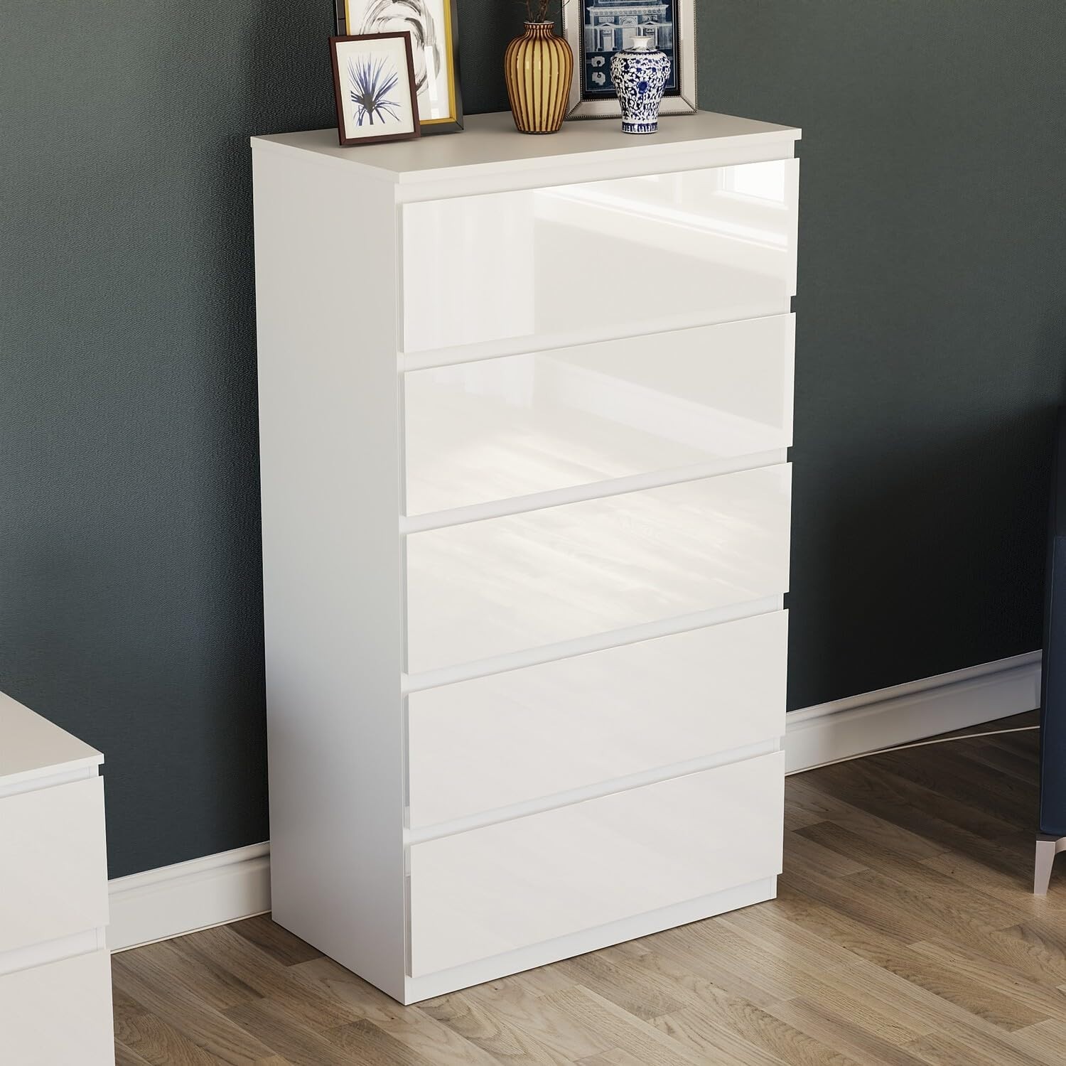 White Modern Bedside Table Cabinet Chest of Drawers 5 Drawer Cabinet Night Stand