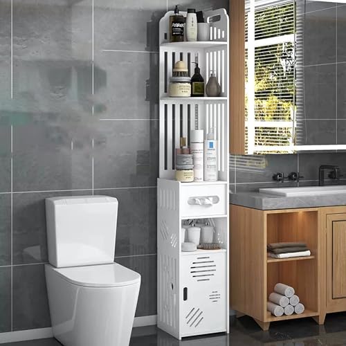 UUE Bathroom Cabinet, Tall Cabinet, Freestanding Bathroom Cabinet, Side Cabinet with Drawers, Open Compartments, Hidden Bin for Bathroom, Living Room, Dining Room, Kitchen, White, 20 x 19.5 x 120 cm