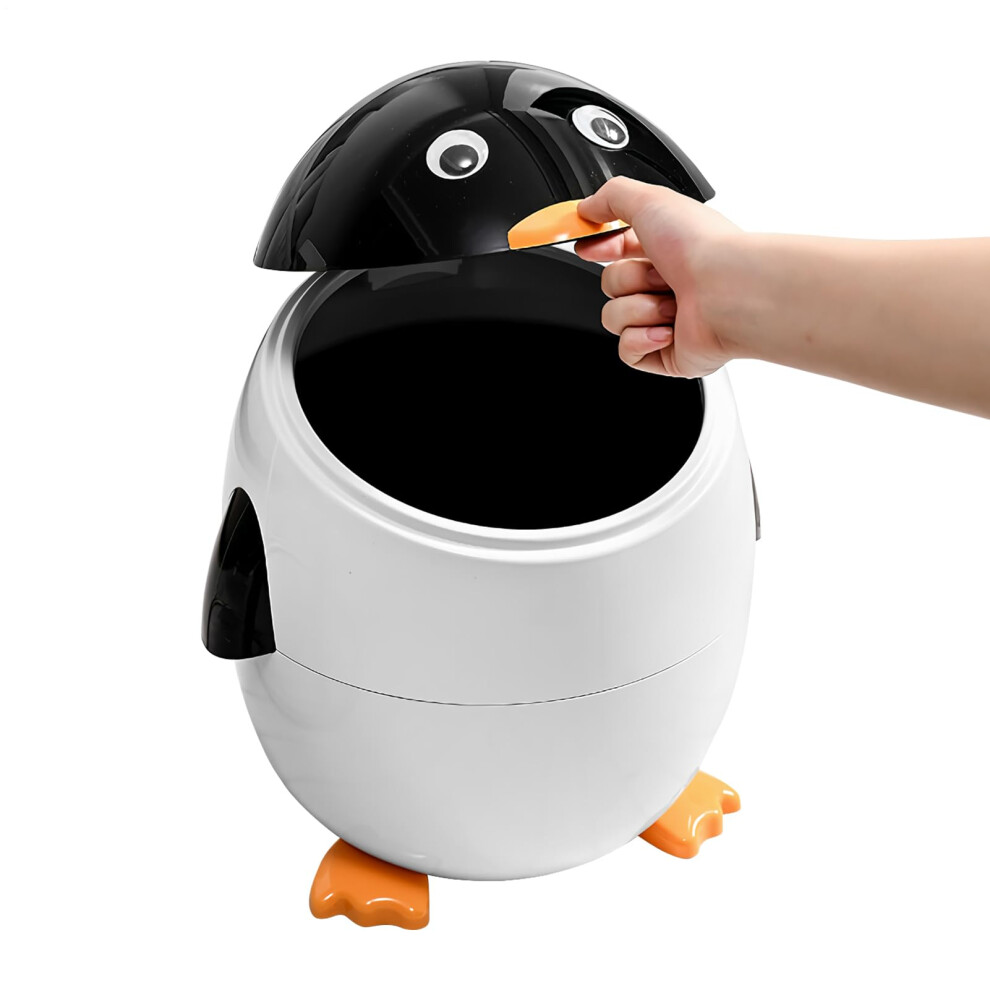 Trash Can With Lid Penguin Themed Under Desk Trash Can Black And White Bin For Home Kitchen Bathroom Bedroom Under Table