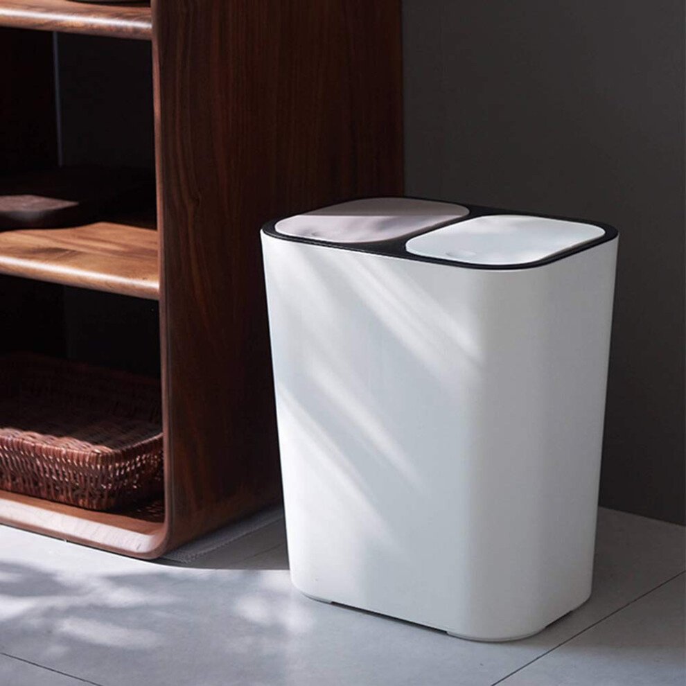 Recycling Bins Two-Compartment Dry and Wet Separation Trash Can With Push Lid White Small Bin for Kitchen and Bathroom