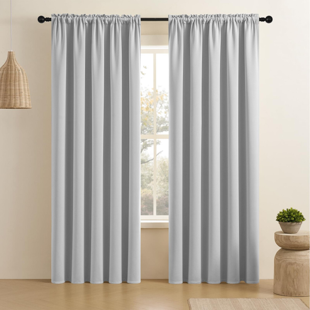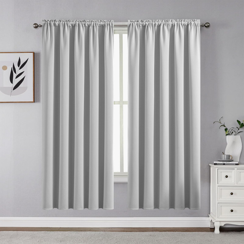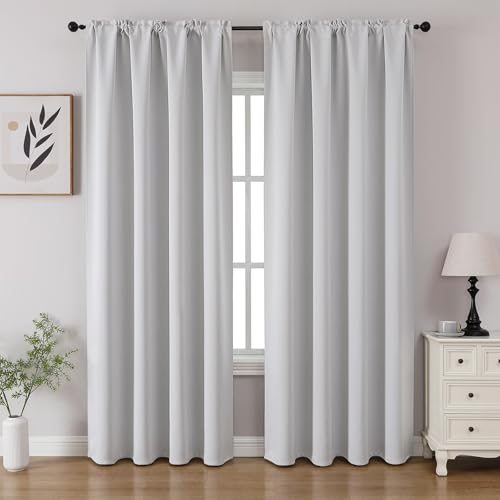 CUCRAF Grayish White Blackout Curtains 72 inch Length 2 Panels Set Rod Pocket Room Darkening Drapes for Bedroom Living Room In