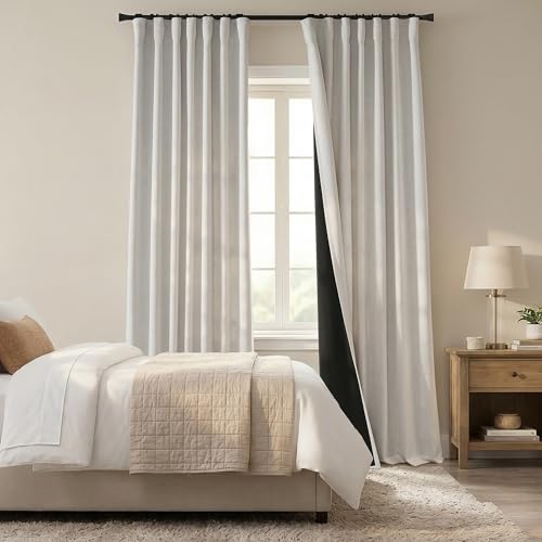 100% Blackout Curtains for Bedroom 90 Inch Modern Solid Living Room Thermal White Blackout Eyelet Curtains Noise Reducing Linen Look Set of 2 Curtain