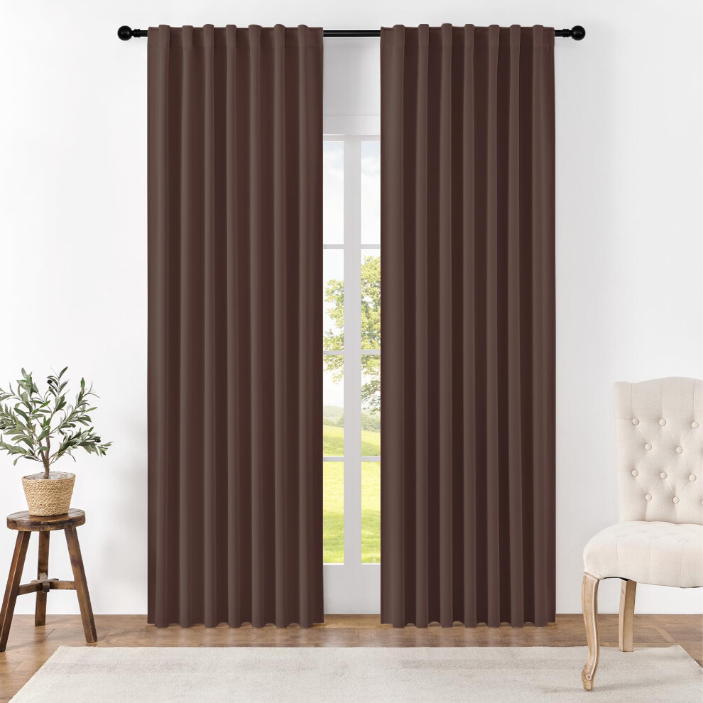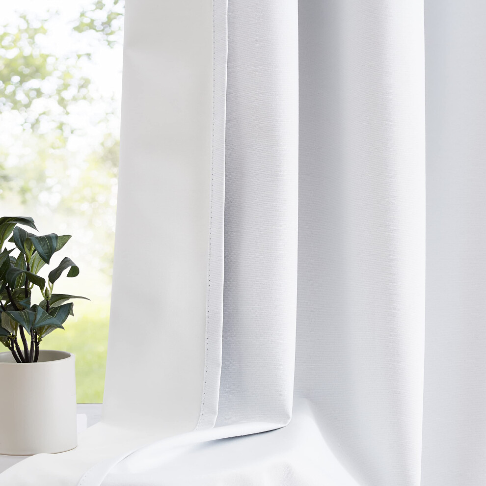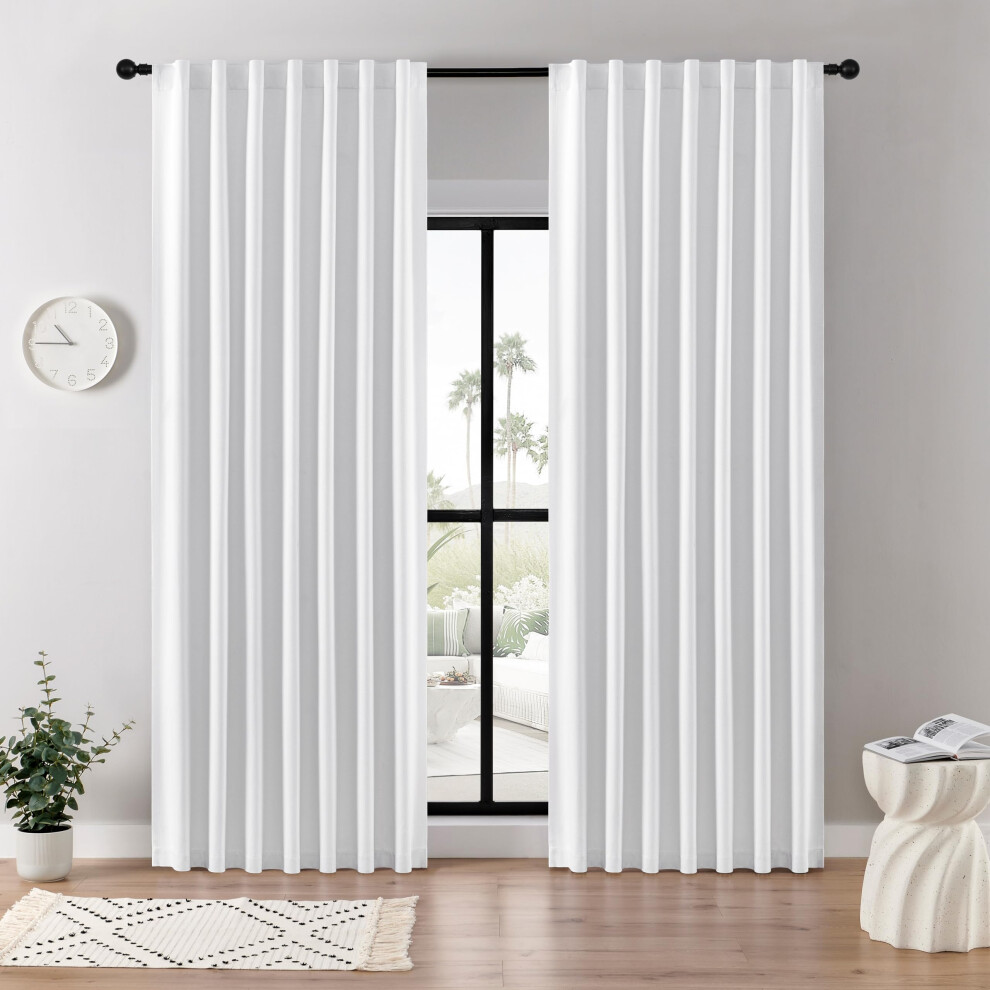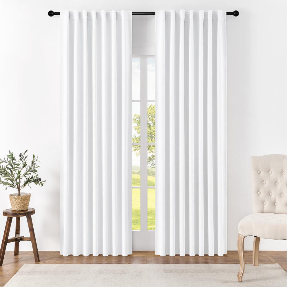 (White, 108") Blackout Curtains- Premium Polyester Thermal Insulated Energy Saving Noise Reducing Set of 2 Rod Pocket Panels Block Sunlight 90 to 92%
