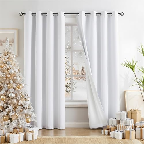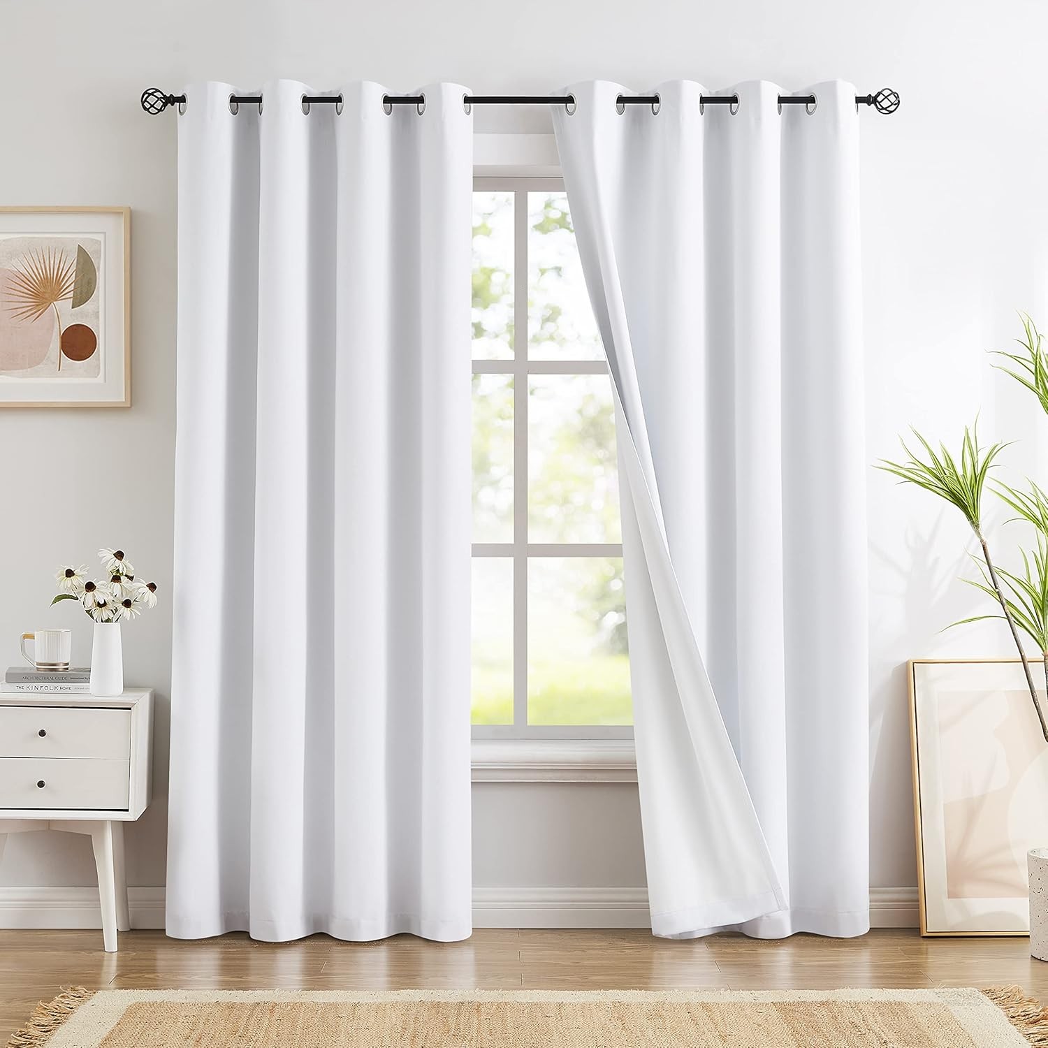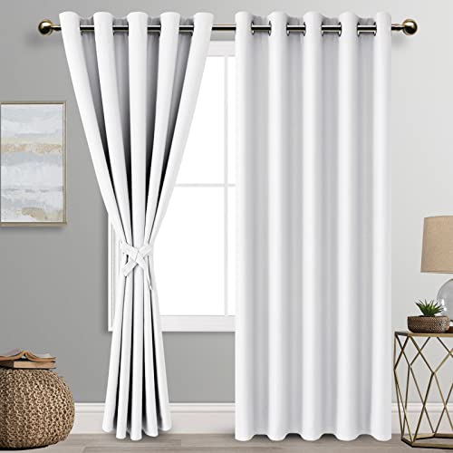 Yakamok 2 Thick Layers Pure White 100% Completely Blackout Curtains Thermal Insulated Room Darkening Drapes for Bedroom(52Wx84L, Pure White, One Pair)