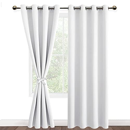 DWCN Greyish White Blackout Curtains with Tiebacks for Bedroom Thermal Insulated Solid Eyelet Curtains for Living Room,2 Panels,46" Wide x 72" Drop