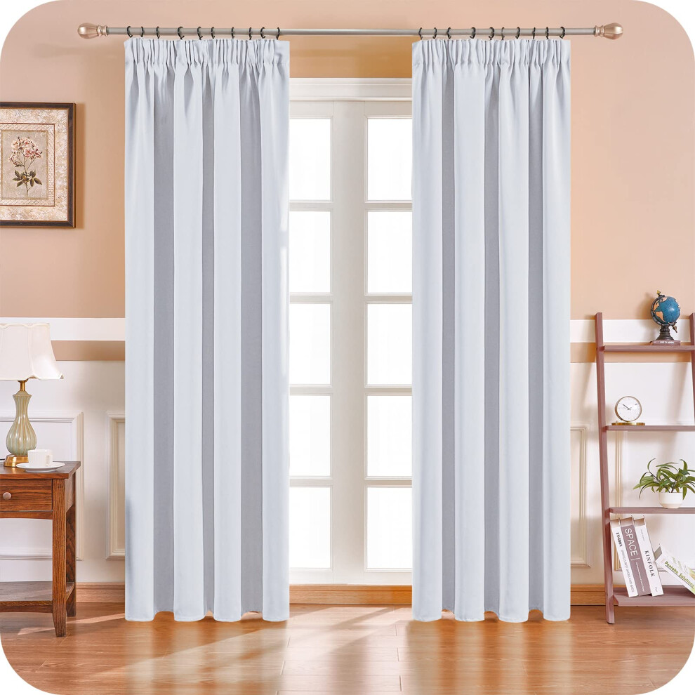 White Pencil Pleat Blackout Curtains - Set of 2 Thermal Insulated & Noise Reducing Panels for Bedroom or Living Room, 245 x 140 cm