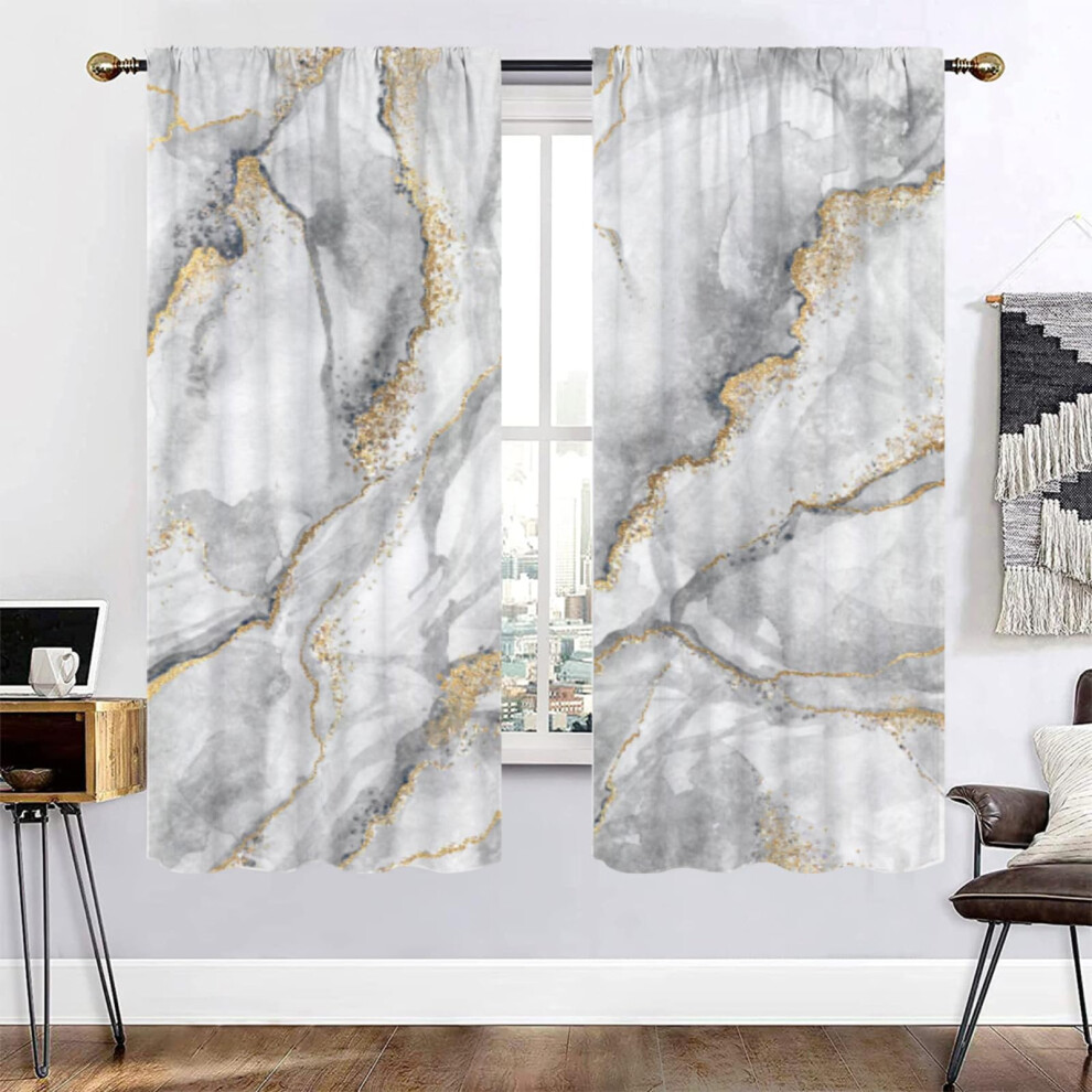 White Marble Blackout Curtains 2 Pack 42x63 Inch White Gold Abstract Art for Bedroom Living Room
