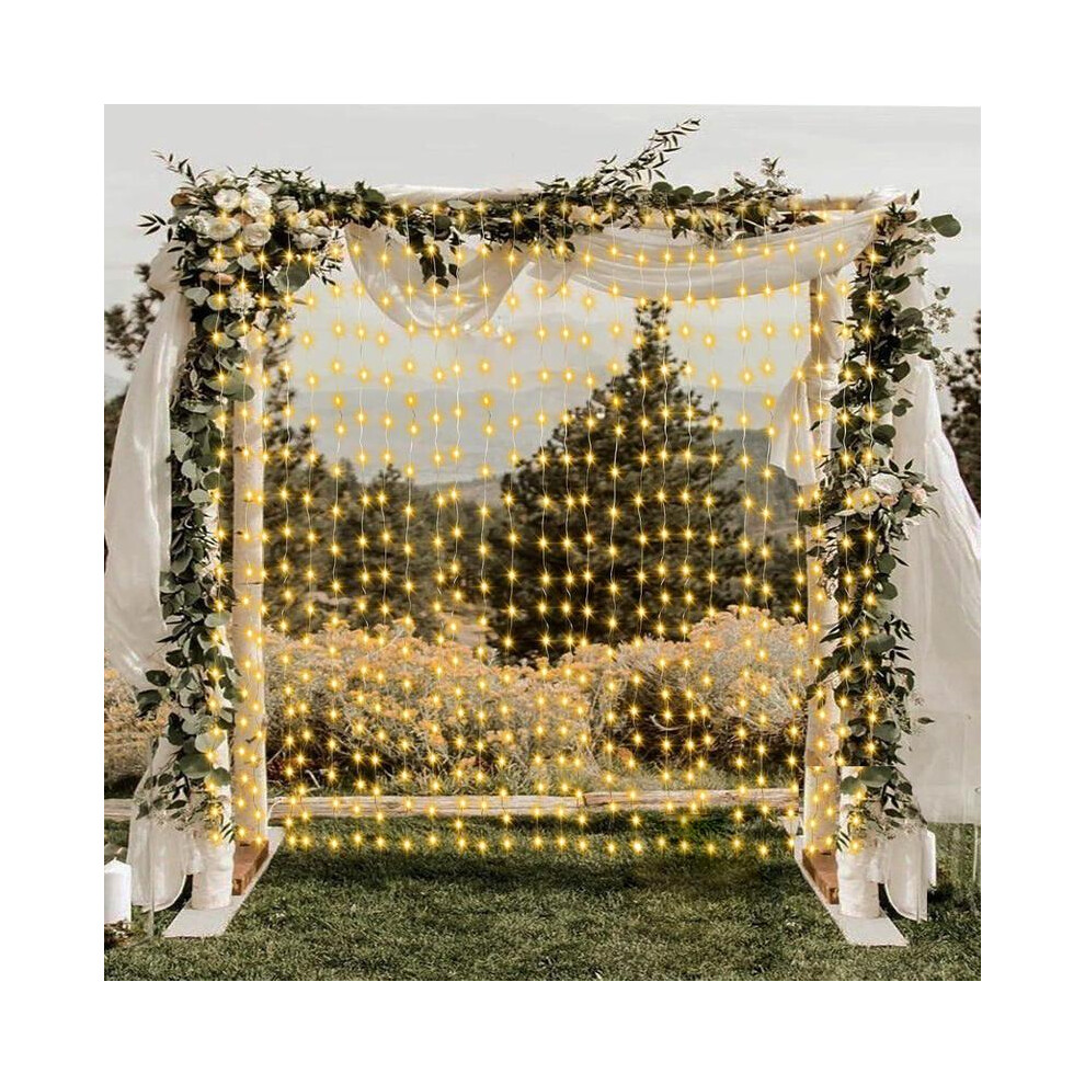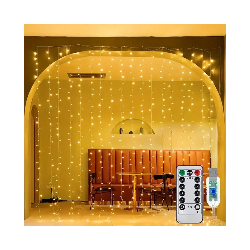 (3m*3m, Warm White Light) Blackout Curtains- Premium Polyester Thermal Insulated Energy Saving Noise Reducing Set of 2 Rod Pocket Panels Block Sunligh