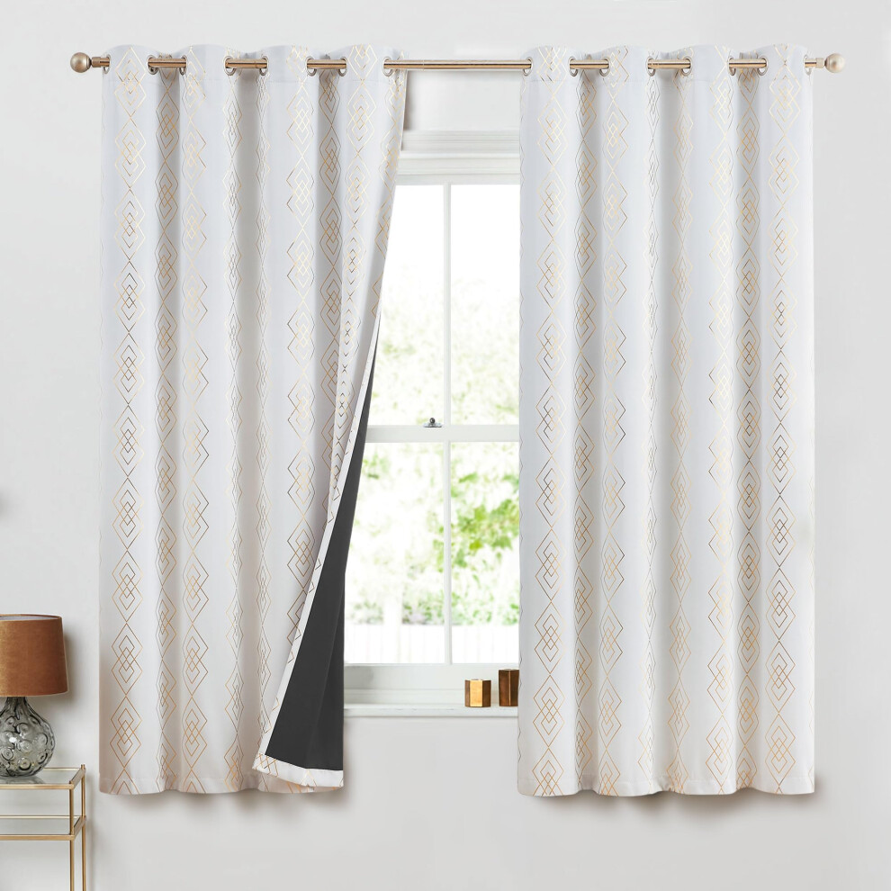 ugoutry White/Gold Full Blackout Curtains for Bedroom Metallic Geometric Diamond Pattern Curtains 63 Inches Long Living Room Darkening Thermal Insulat