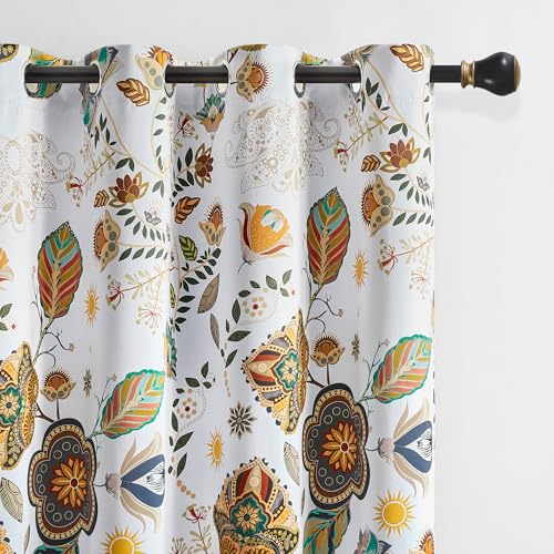 XiDi White Floarl Blackout Curtains for Bedroom 54 Inch Drop Plant Printed Boho Modern Farmhouse Vintage Eyelet Thermal Insulated Curtain Window Drapes Decor 2 Panel Sets