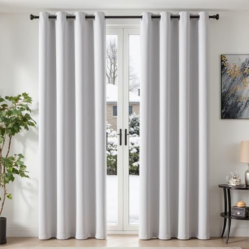 Fmfunctex White Silver Blackout Curtains for Bedroom 72 inch Drop Eyelet Curtai