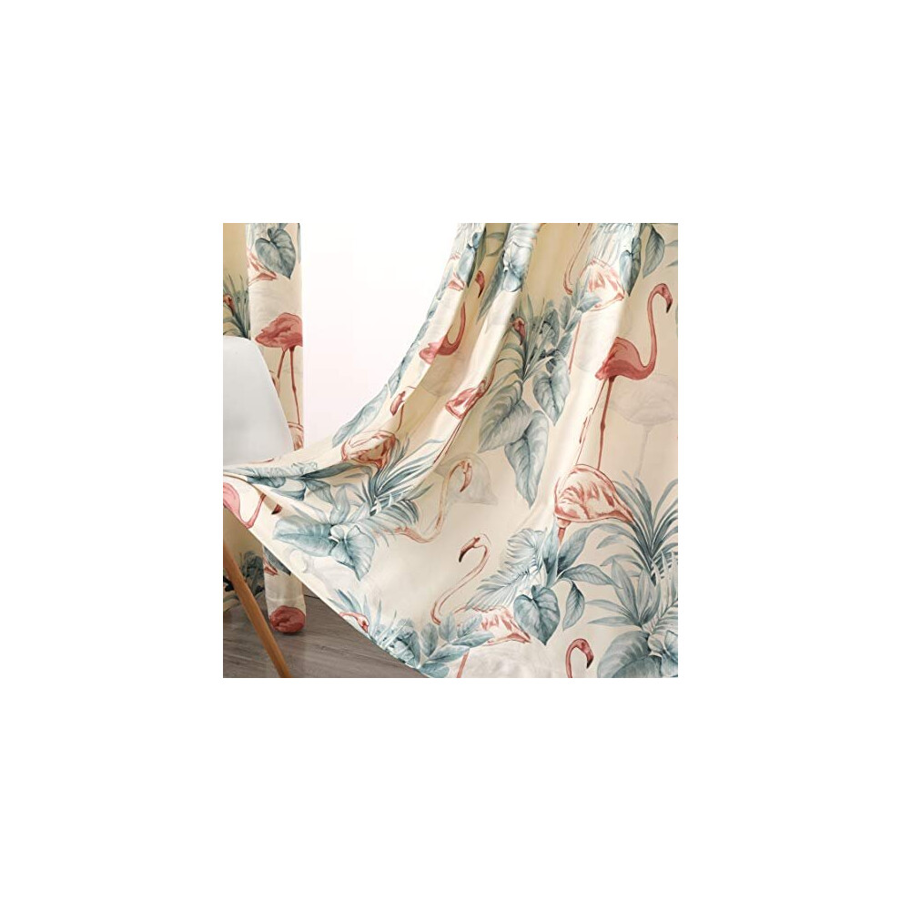 Autumn Dream Leaves Flamingo Pattern White Velvet Blackout Curtains Drapes,Grommet Top Pastoral Floral Farmhouse Curtains for Living Room,Be
