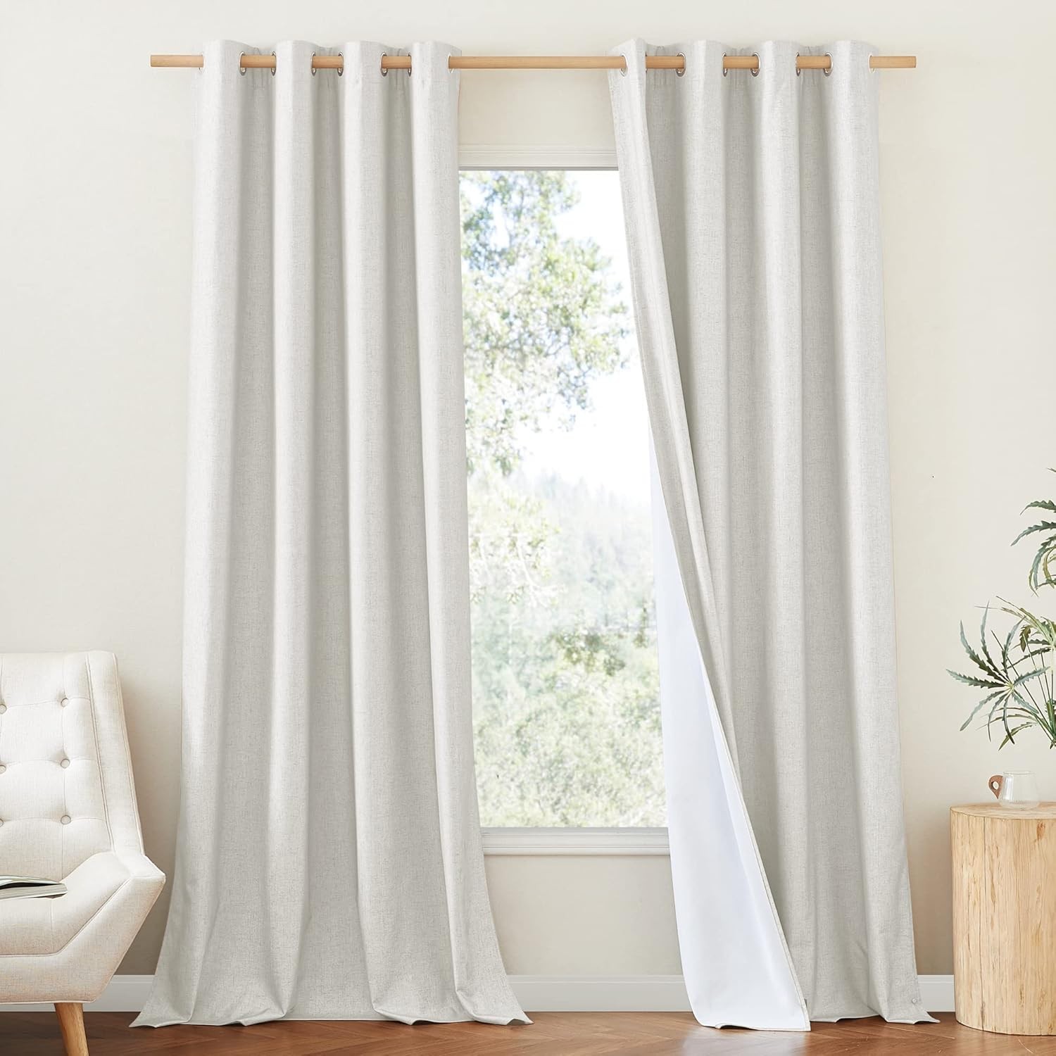 PONY DANCE White Blackout Curtains - Linen Curtains Eyelet, 100% Blackout Therm