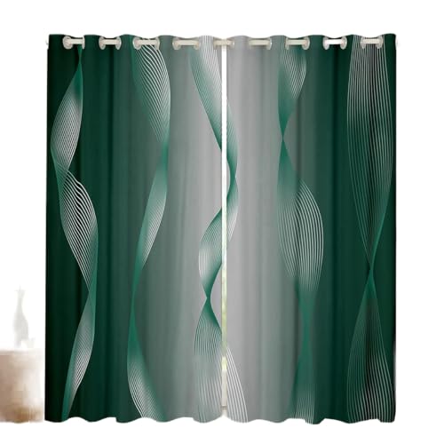 Homewish Gradient Green and Greyish White Blackout Curtains Ombre 2 Panels 66" Wx72 L Curtains & Drapes,Trippy Spiral Silver Wave Line Curtains,Abstract Art Room Decor Aesthetic
