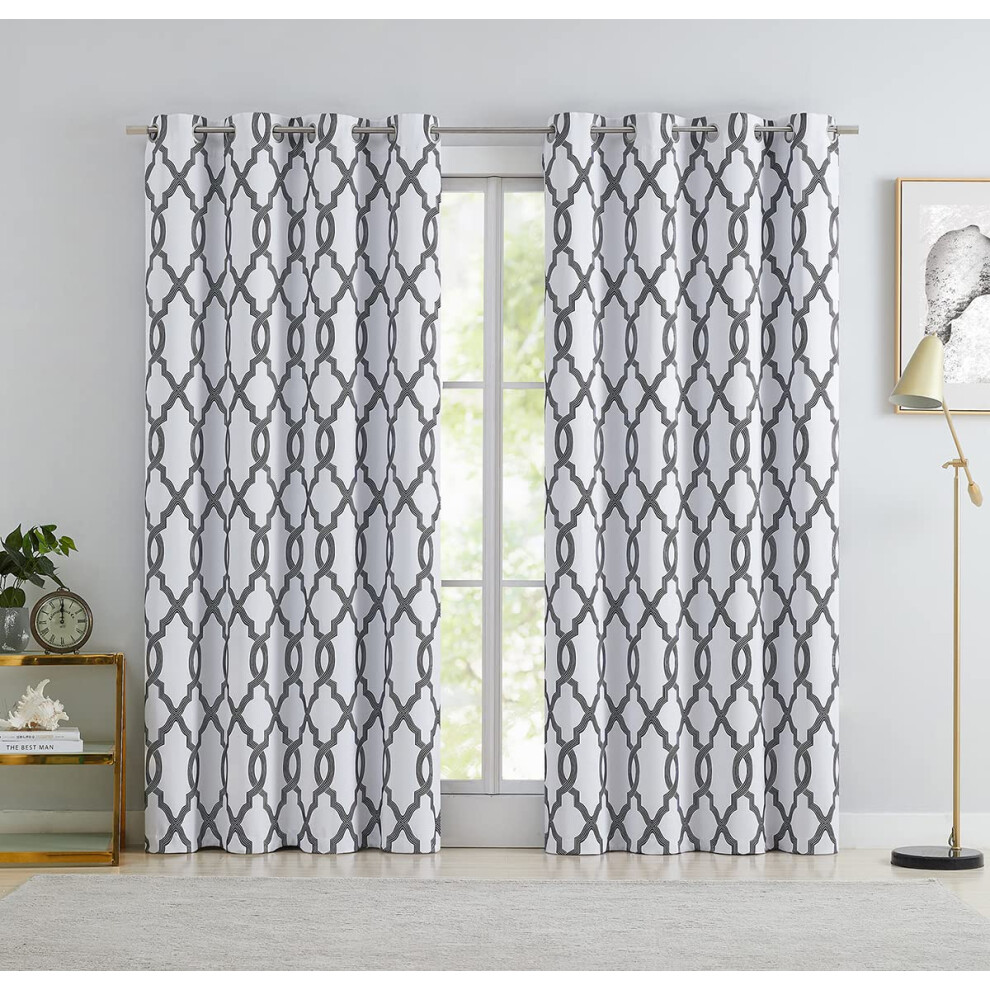 ugoutry Black White Moroccan Full Blackout Curtains 95 Inch Length, Thermal Insulated Grommet Window Treatments for living room, Thermal Drapes 2 Pan