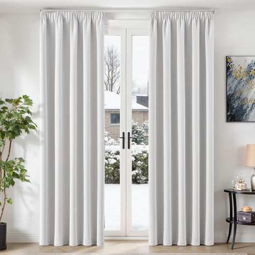 Fusion White Blackout Curtains W90 x L90 (229x229cm) – 2 Panels – Pencil Pleat Thermal Drapes – Soundproof Window Treatment for Bedroom & Living Room – Plain White Pleated Design