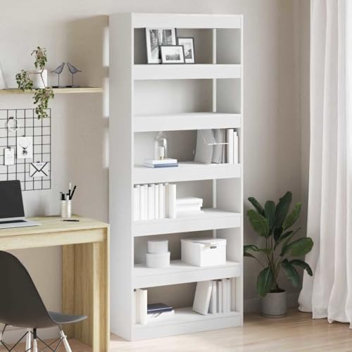 SKTQYQO Modern White Book Cabinet with Shelf Engineered Wood 80 x 30 x 198 cm, Open Storage Unit for Living Room, Durable Furniture with Multiple Shelves for Books and Decor Display