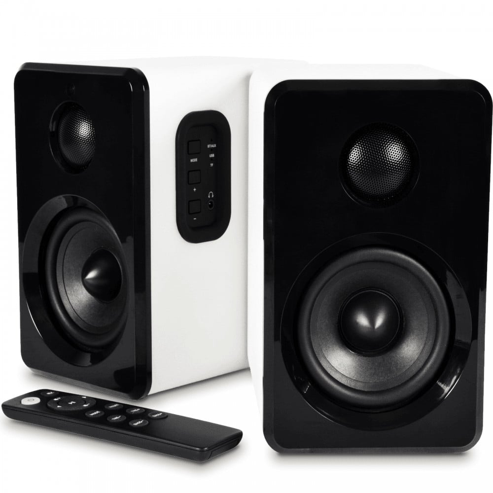 Active Wireless Bluetooth Bookshelf Speakers Pair AUX/USB/SD + Remote White