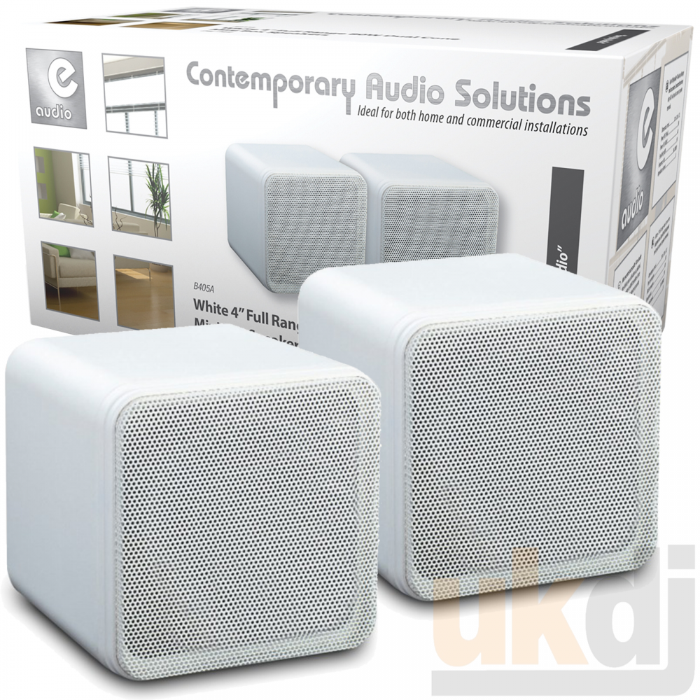 Pair Of White 4” ABS Bookshelf or Monitor Cube Dual Cone Speakers 80W 8Ohm