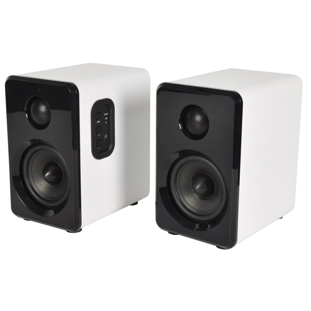 AV:Link Active Bluetooth Bookshelf Speakers for Studio TV MAC PC Laptop White