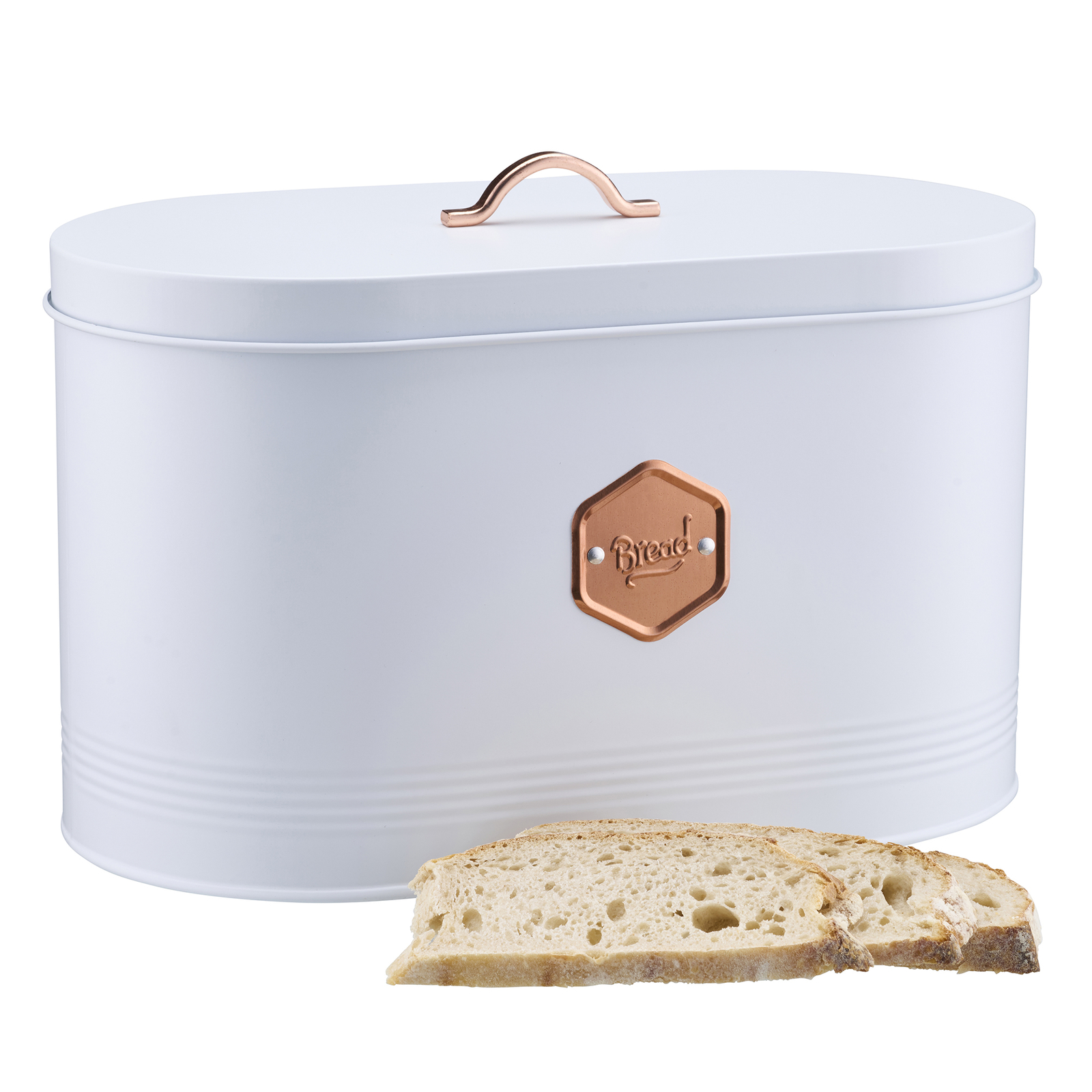 Bread Bin with Nameplate Kitchen Countertop Storage Bin Container White & Copper