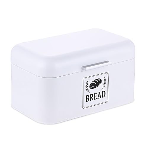 Relaxdays 10030067 White Bin, Powder-Coated Steel, Storage Box, H x W x D: 13.5 x 26 x 21 cm, Bread Container