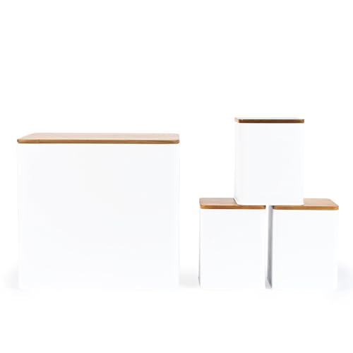 Salter BW12900WEU7 Toronto 4-Piece Countertop Set – Bread Bin, Tea, Sugar, Coffee Canisters, Storage Containers, Powder Coated White Finish, Acacia Wooden Lids, Stylish, Storage Jars, White/Wooden