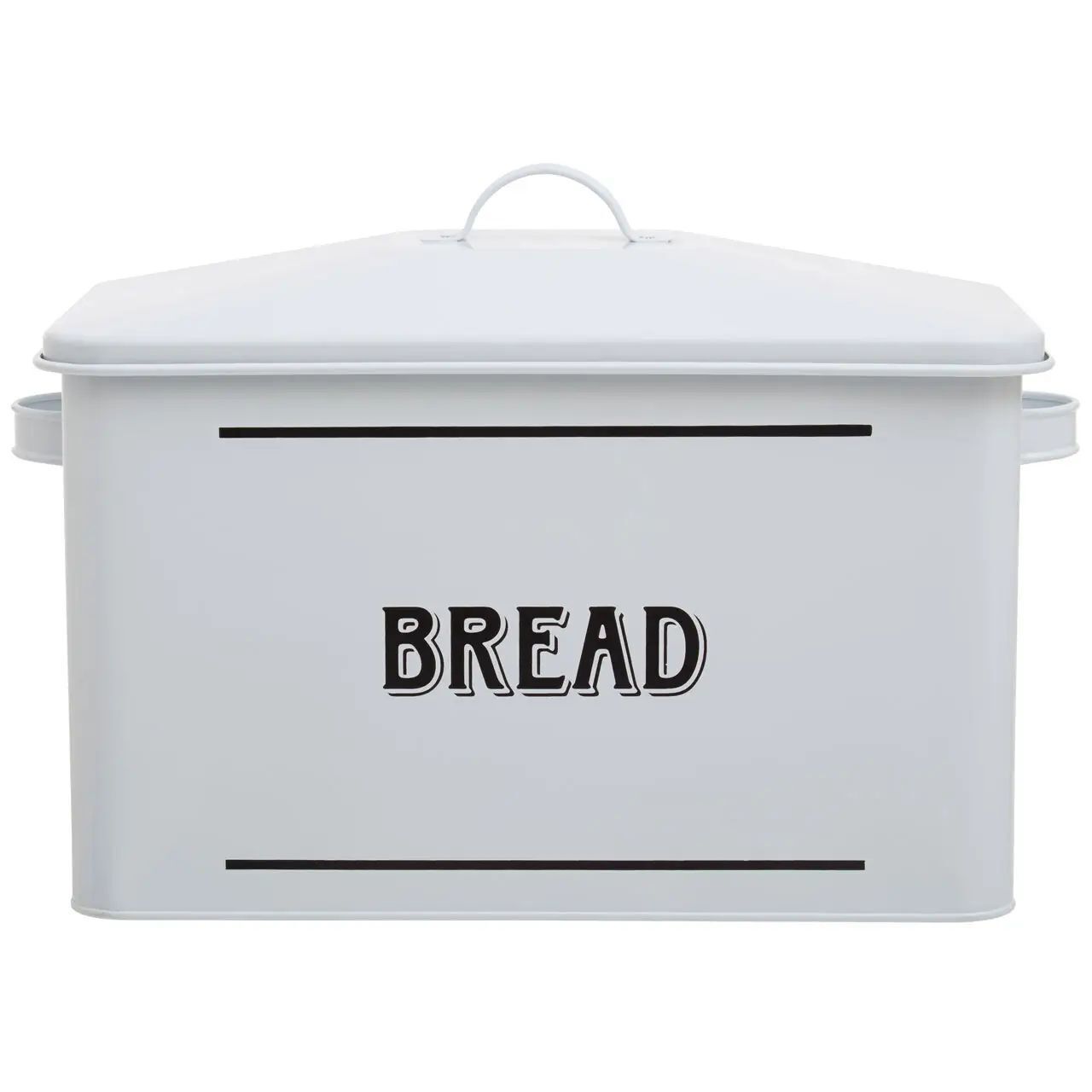 White Bread Bin Grey Lid With Handle Metal Kitchen Food Storage Container Box