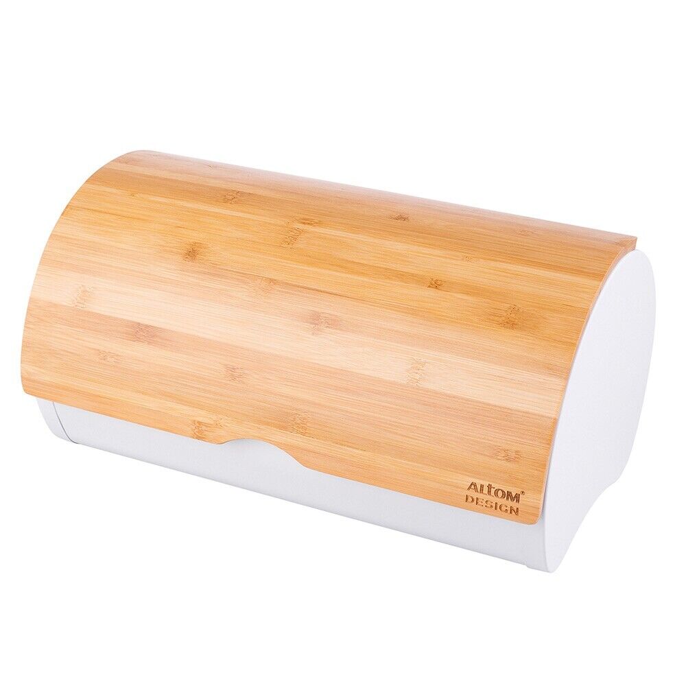 Chuboir Bread Bin, Metal Bread Box with Bamboo Lid Usable as Cutting Board, Bread Storage Container Holder for Kitchen Countertop, 13 x 7 x 5.3 inch (White)
