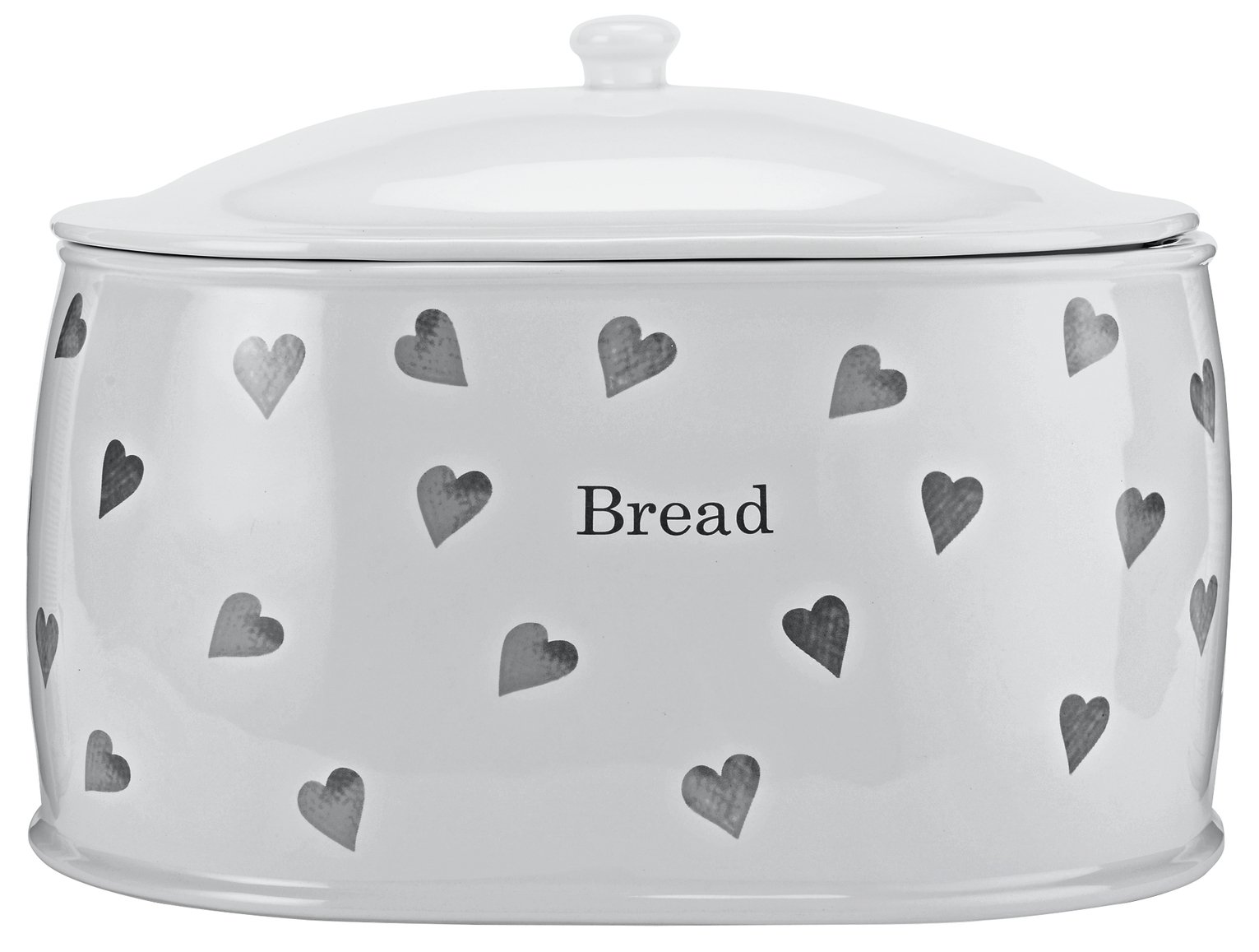 White Dolomite Charm Bread Crock Heart Design Breadbin Pot Kitchen Storage Bin