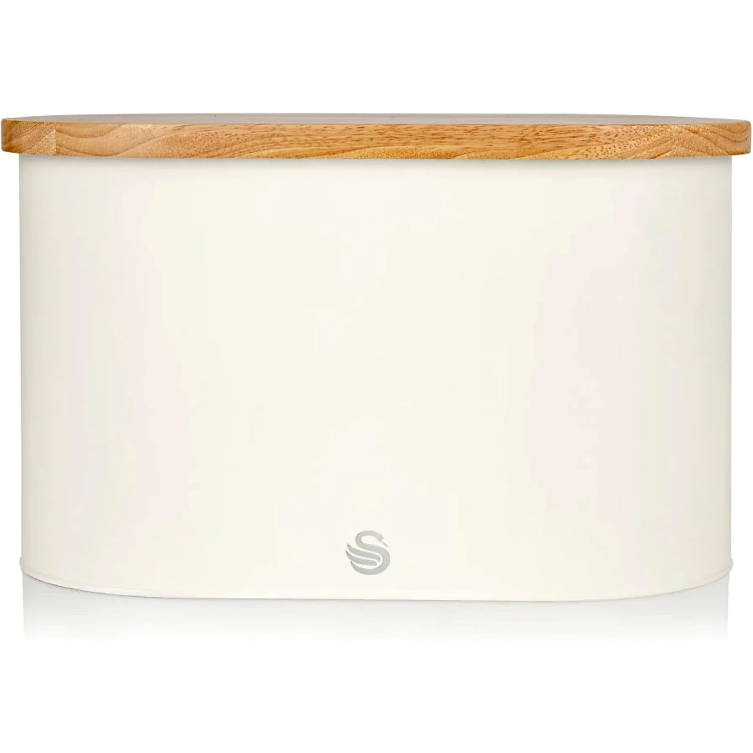 Swan Nordic Bread Bin Bamboo Cutting Board Lid Cotton White Oval