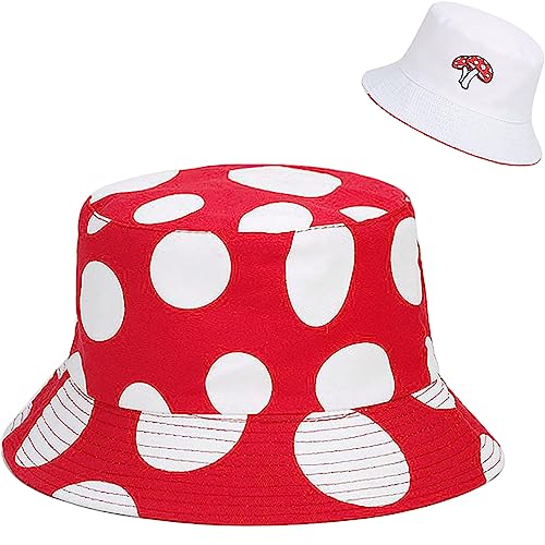 XYIYI Reversible Red White Mushrooms Bucket Hats for Women Men Travel Beach Sun Hat Outdoor Fisherman Cap