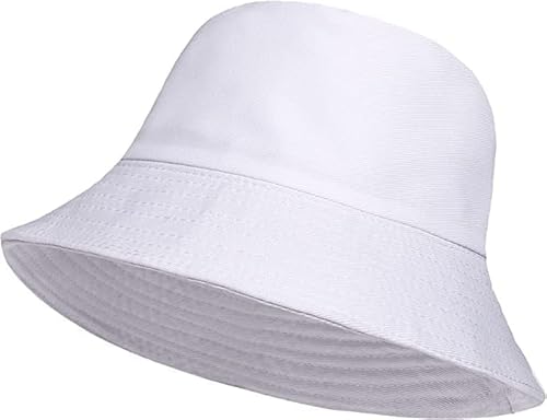 ZRWASKA® Unisex Bucket Hat Reversible Mens, Womens Cotton Fisherman Hats for Hunting, Camping, Hiking, Travelling, Fishing, Football Summer Sun Hat Plain Colours Size 56-58cm (White)