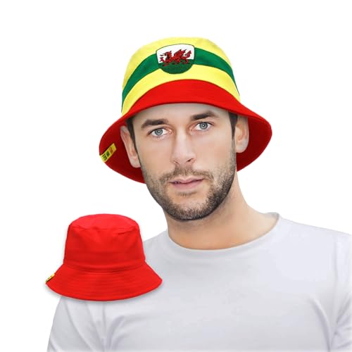 Strength & Honour Welsh Reversible Bucket HAT Yma O HYD Euros World Cup Wales Adult Supporters Hat Red and White
