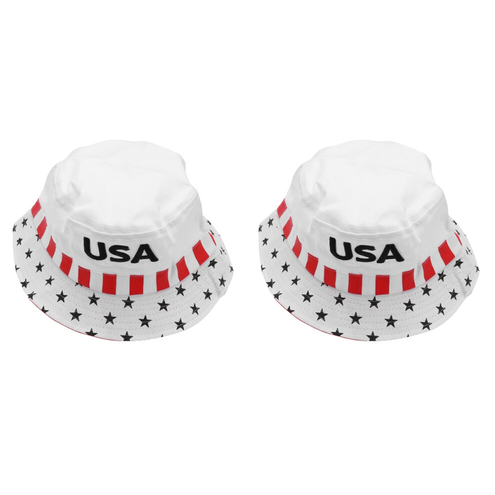 2 Pieces White Bucket Hat,Summer Fisherman Sunshade Caps,Beach Sun Hat,Rain Hat