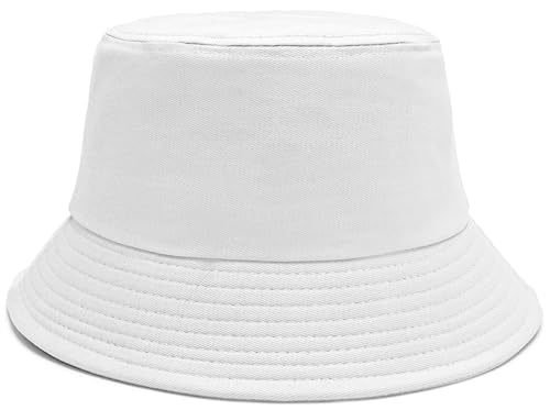 Malaxlx White Bucket Hat Beach Sun Hat for Women Men Teens Outdoor Travel Summer Trendy Fishing Hat