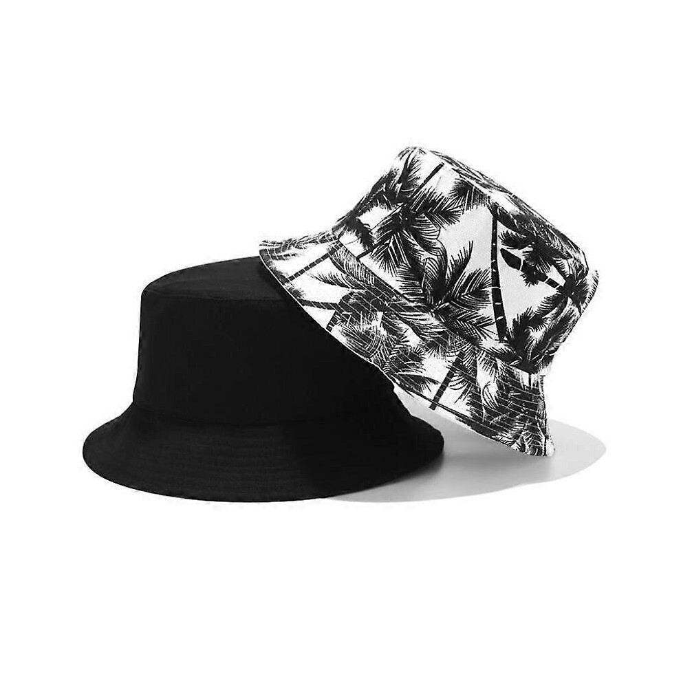 (As show, White) Two Side Bucket Hat For Men Women Hip Hop Fisherman Hat Adult Summer Flat Cap