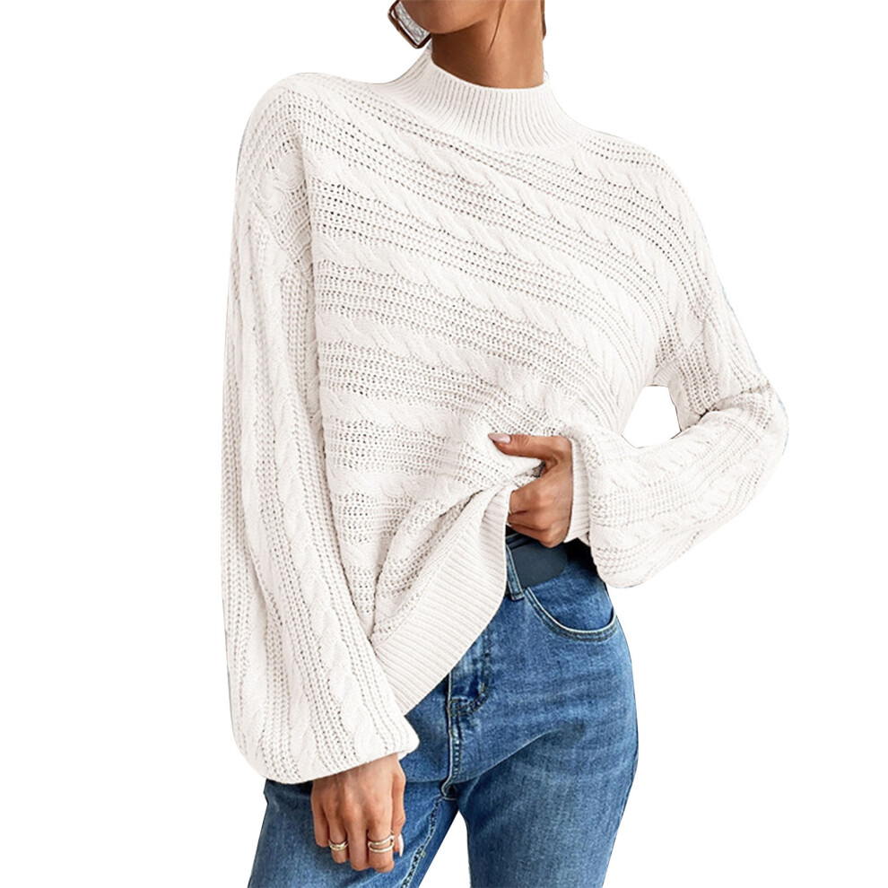 Breampot Women Cable Knit Jumper Casual Basic Long Sleeve Pullover Sweater Tops(White,Large)