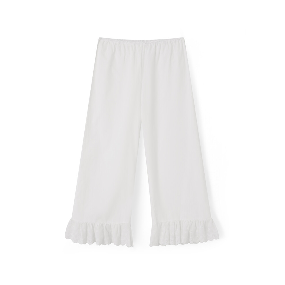 (S, White) Women Summer Capri Pants Solid Color High Waist Eyelet Hollow Out Wide Leg Trousers Pull On Loose Pants