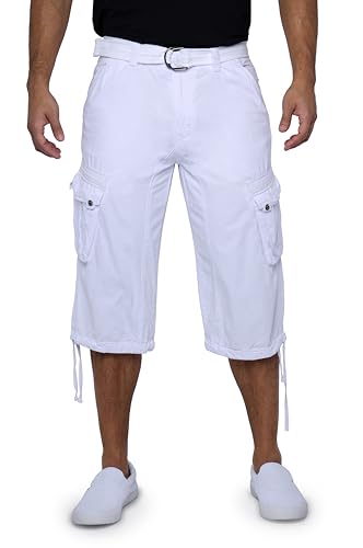 X RAY Men's Belted Cargo Long 18" Inseam Below Knee Length Multi Pocket 3/4 Capri Pants (Big and Tall Shorts, White, 28