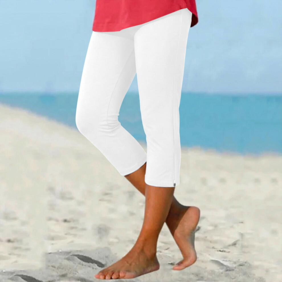 White Capri Pants for Women â Cotton-Flax Elastic Crop Trousers, Beach & Yoga, Compatible with XXL