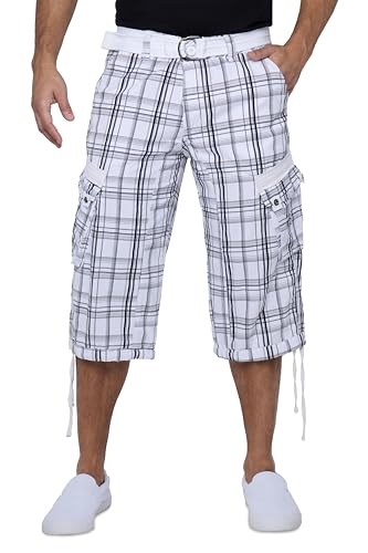 X RAY Men's Belted Cargo Long Shorts 18" Inseam Below Knee Length Multi Pocket 3/4 Capri Pants (Big and Tall Shorts for Men), Plaid White, 36