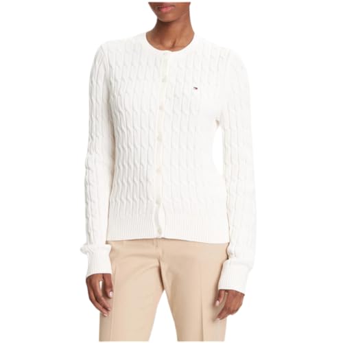 Tommy Hilfiger Women’s Slim Fit Cable Knit Cardigan, White (Ivory Silk), L