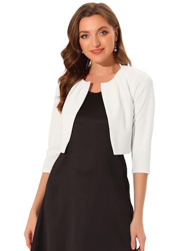 Allegra K Collarless Pleated Shrug Top for Women's 3/4 Sleeve Shrug Open Front Crop Cardigan White M