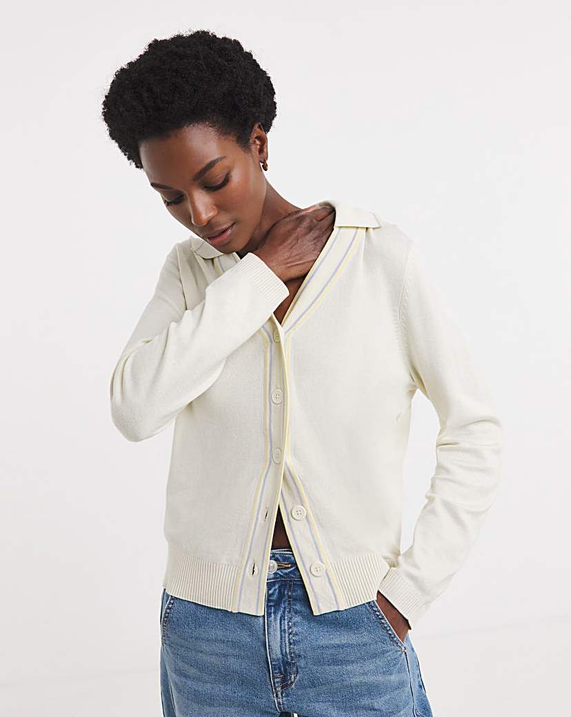 Collared Tipping Cardigan White - JD Williams - Size: 12/14
