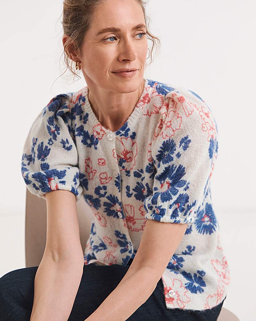Printed Short Sleeve Cardigan White Multi-Coloured - JD Williams - Size: 32/34